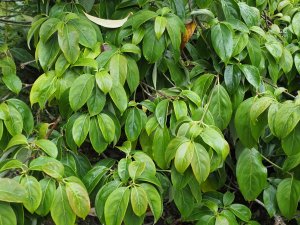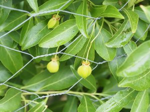 A trip to Forty Acres Wood to see what is seeding over there.The original Schefflera macrophylla has seed heads which will not be ripe for several weeks. Last year they fell to the ground and deer ate them before we got there. Note how the large bow which we cut for Chelsea two years ago has quickly re-sprouted three large shoots.