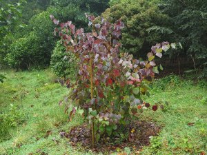 Cotinus ‘Grace’ turning colour nicely but not yet at its best.