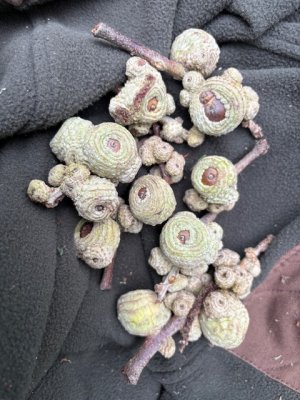 Windblown seed clusters on the younger Lithocarpus cleistocarpus above Hovel Cart Road. A few seem large enough to potentially be fertile. We have given a few away but have yet to germinate any ourselves.