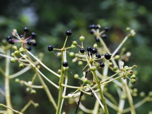 Aralia elata ‘Variegata’ now with ripe black berries.