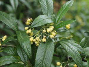 Yellowing berries on Cotoneaster ‘Exburyensis’.