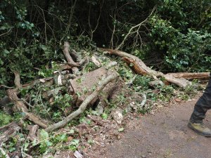 The three dead and dangerous oak trees by the Fernery have gone and the drive is now clear again with no crane.