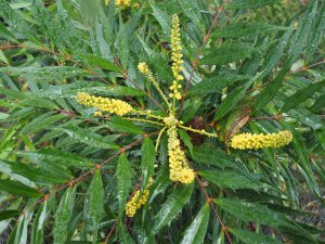 Mahonia eurbracteata ‘Meteor’ – a gift from Roy Lancaster – with its first proper flowering.