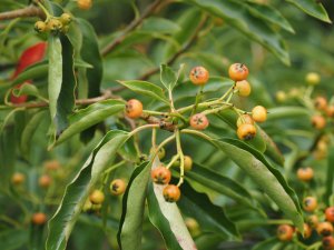 Euonymus myrianthus is a large tree and it is hard to see if it is setting any seed after the drought? The seed heads lower down are shrivelled but perhaps not higher up. We photographed this tree in flower in the spring and it is now a new item for sale on the Burncoose website.