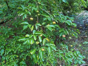 Schima superba is flowering rather better this year than last. Some flowers already on the ground. Tom said yesterday that his Schima species were performing well but ours are having a second year off.