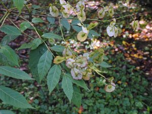 Aesculus wilsonii laden with conkers again this year. Last year’s crop germinated well.