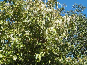 Eucryphia lucida x cordifolia still has a few tail end flowers out.