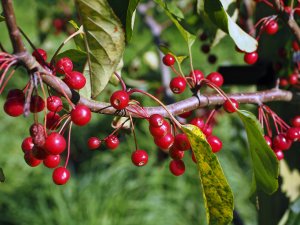 Malus ‘Donald Wyman’ – small bright red fruits.