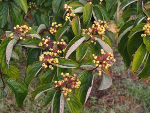 Cornus drummondii ‘Sunshiny Drops’ with the fruits turning colour.