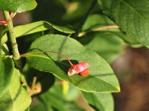 A one year from planting Euonymus oxyphyllus (BSWJ 10815) with excellent open seed capsules.